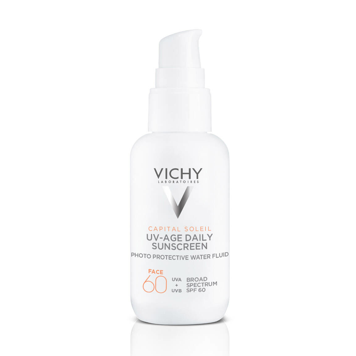 Capital Soleil UV-Age Daily SPF 60 con protección UVA + UVB es tu defensa diaria contra los signos visibles del envejecimiento. Nuestro fluido acuoso fotoprotector ultraligero se desliza sin esfuerzo y es invisible en todos los tonos de piel.