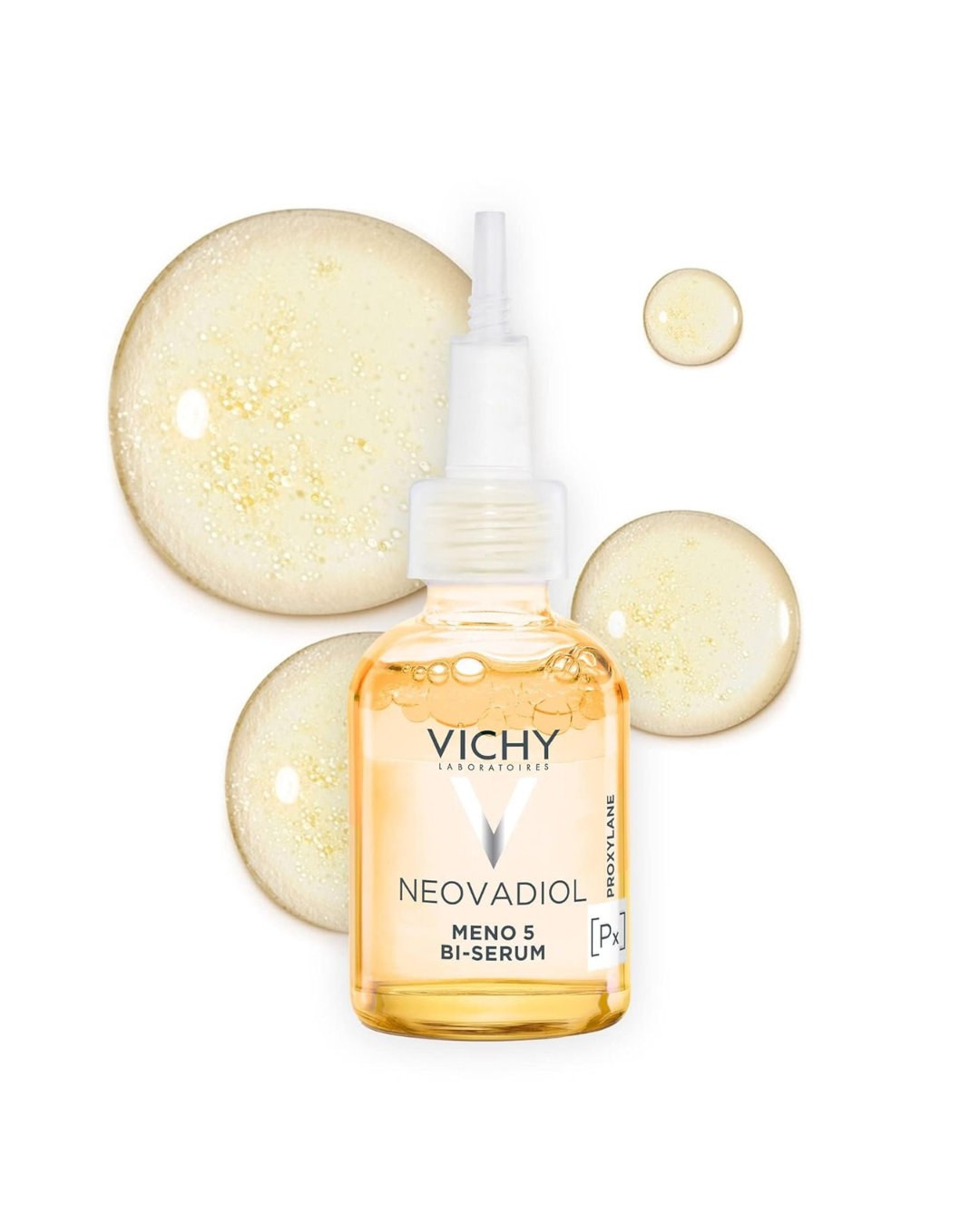 Neovadiol Meno 5 Bi-Serum, con proxylane, vitaminas B3-C-E y omegas 6-9, ayuda a revitalizar la piel y revelar una tez luminosa y uniforme en pieles maduras. Contribuye a tratar la falta de luminosidad, el tono desigual, la pérdida de elasticidad y las arrugas.